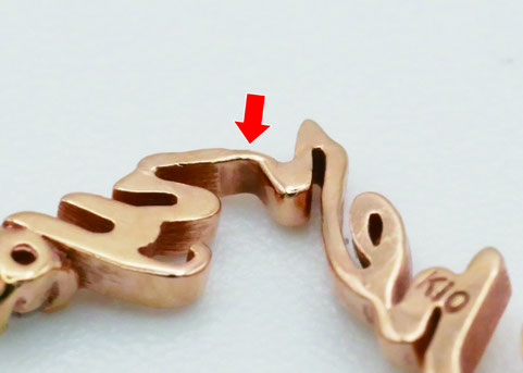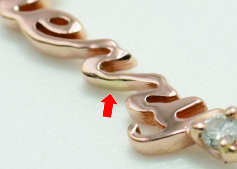 曲がってしまった部分はデザイン的にも厚みが薄くなっていて、