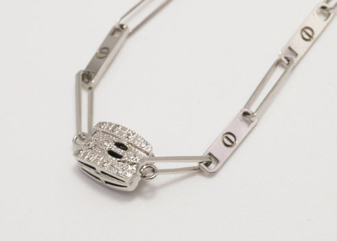 ホワイトゴールド(K14WG)のプレート上のネックレスチェーンを使用して