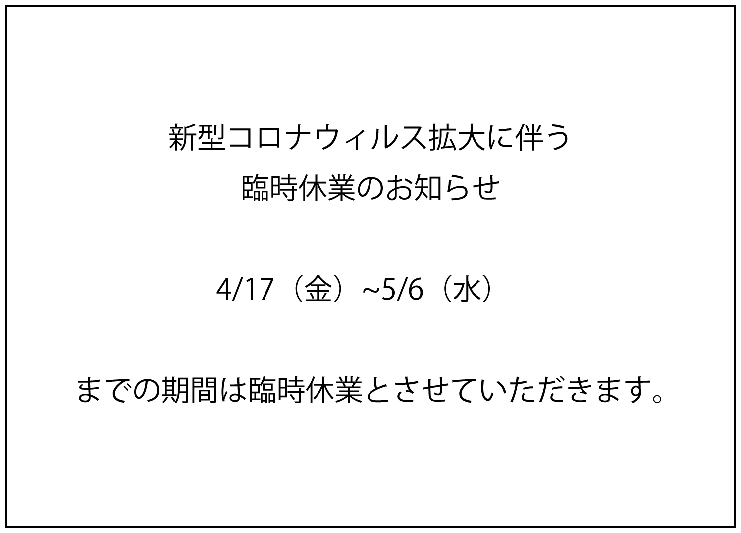 新型コロナウィルス拡大に伴う休業のお知らせ!